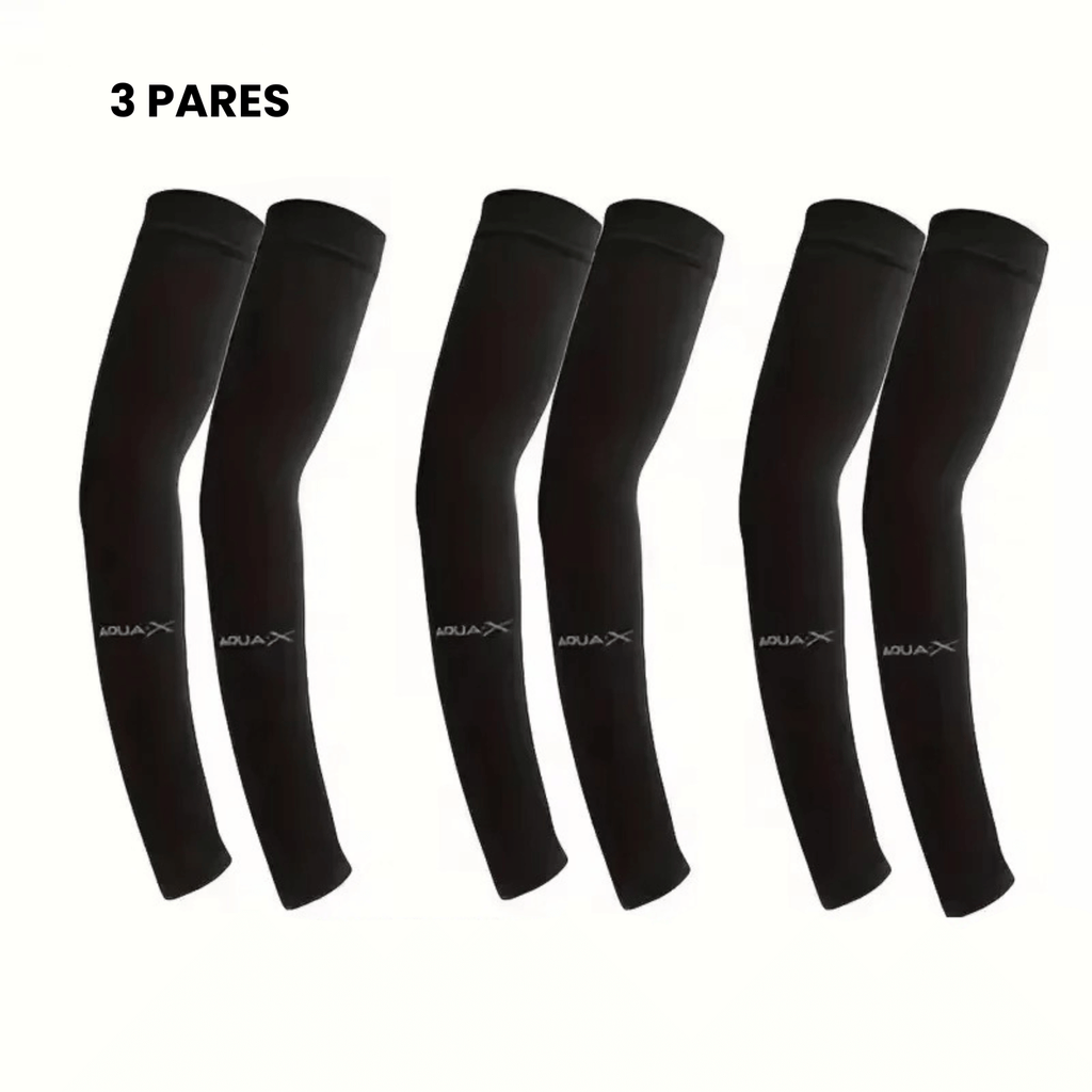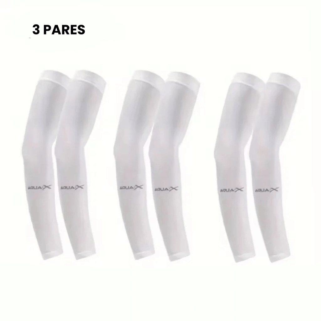Feitas com tecido respirável e elástico, elas oferecem proteção contra os raios UV, evitam queimaduras e ajudam a manter a pele fresca mesmo nos dias mais quentes.