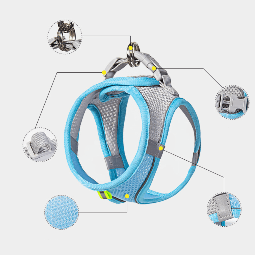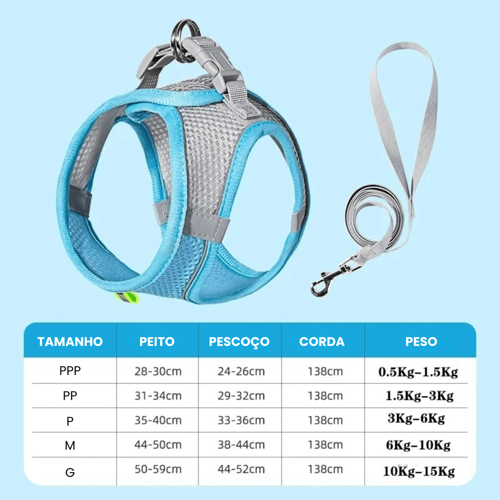 ✔ Ajustável e Confortável: modelo tipo colete com tiras de nylon macias e respiráveis, que se ajustam perfeitamente ao corpo do pet.
