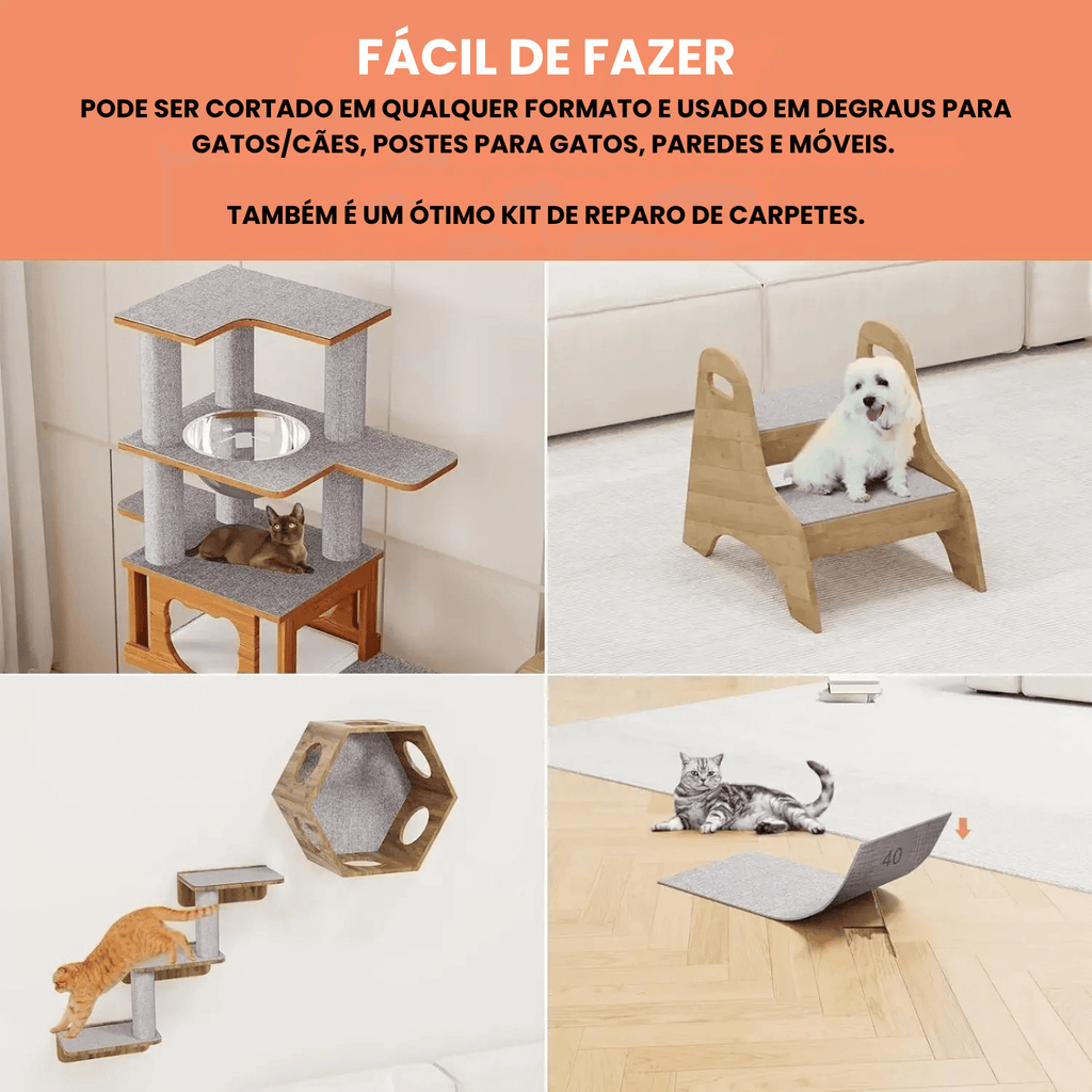 Desenvolvido especialmente para gatos que amam afiar as garras, este tapete arranhador autoadesivo protege seu sofá, paredes e cadeiras sem comprometer a decoração da casa.